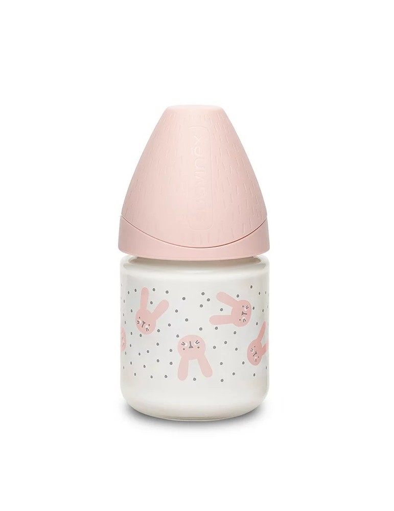 Suavinex Butelka premium szklana Królik różowy 120 ml Hygge Baby 0+