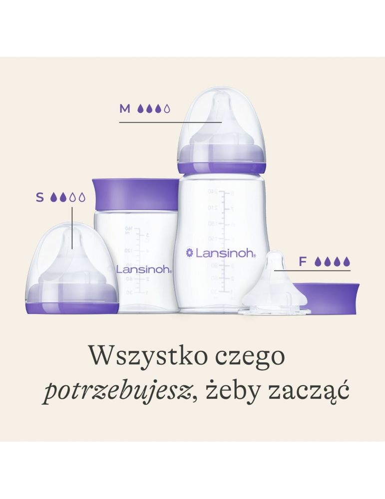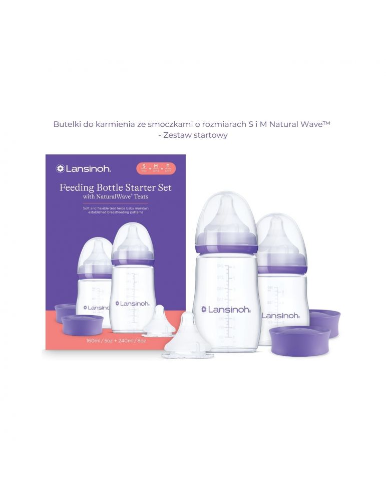 Lansinoh Zestaw startowy Butelki ze smoczkiem o rozmiarach S i M Natural wave