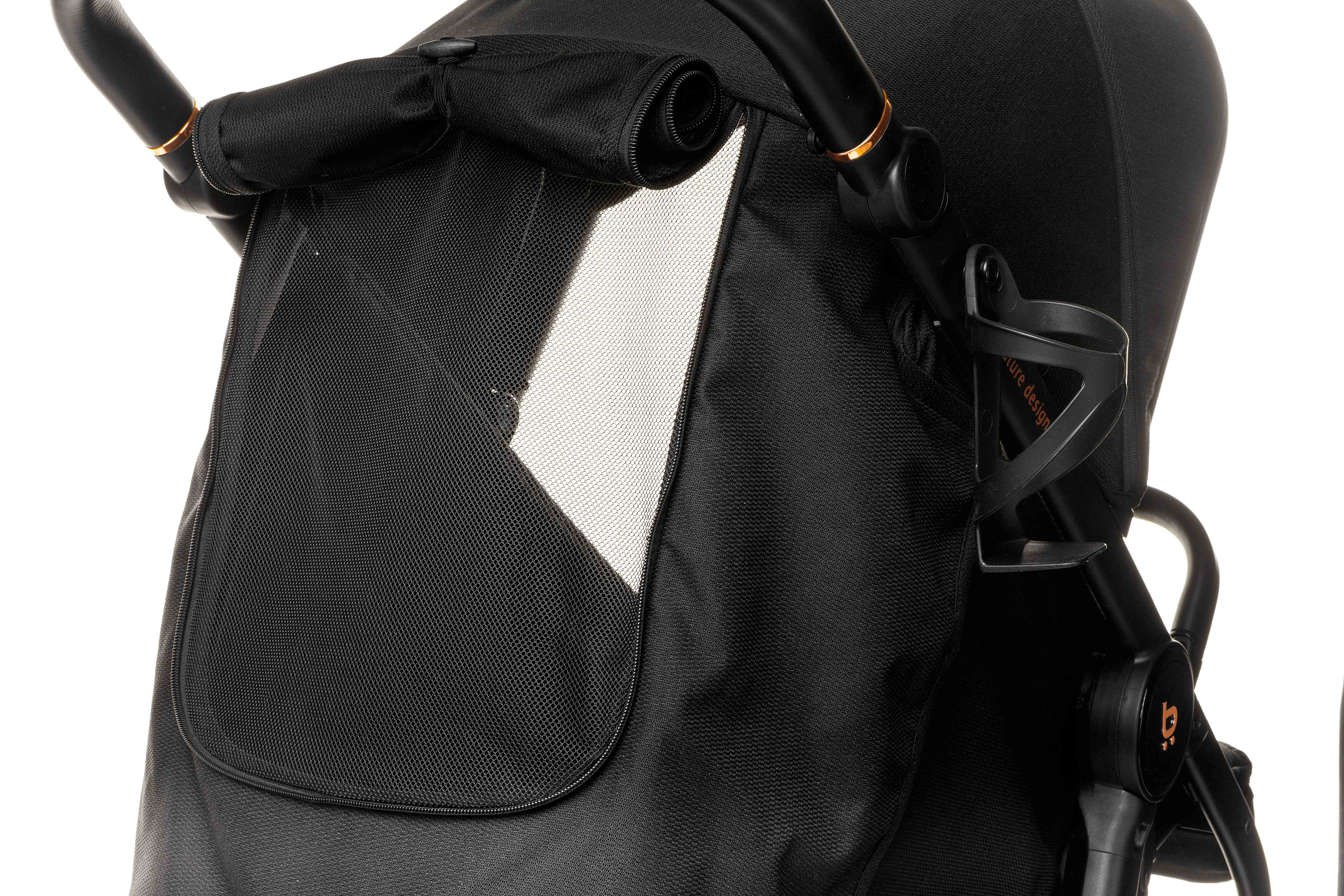 Przestronna budka wykona z tkaniny z powłoką hydrofobową odporną na promieniowanie UV 50, powiększana o dodatkową sekcję, zapewni skuteczną ochronę przed słońcem, wiatrem i deszczem.