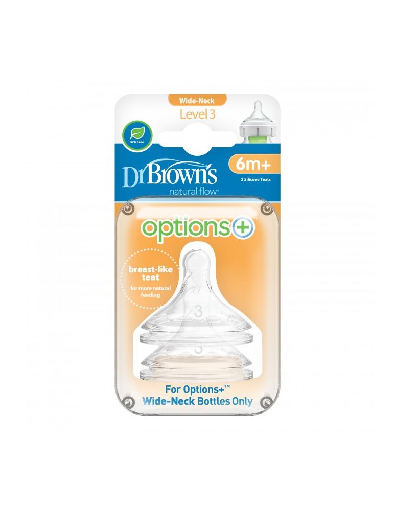 Dr Brown's Smoczki do butelki Options+ Szeroka szyjka 6m+ poziom3 2szt