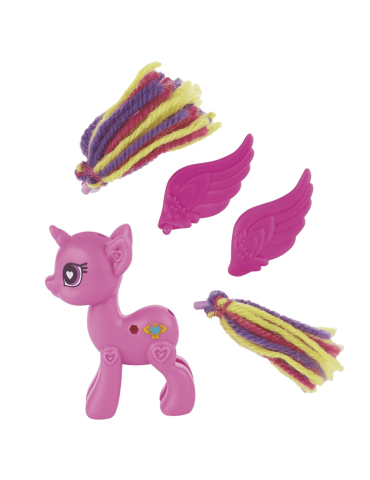 Wyjmij, połącz, wystylizuj! Zaprojektuj swojego ulubionego kucyka na kilka różnych sposobów! W każdym zestawie elementy do stworzenia dwóch kucyków z mnóstwem fryzur, ogonów oraz innych elementów. Wyjmij elementy z arkuszów, połącz je ze sobą i stwórz własnego kucyka! W zestawie śmieszne naklejki, aby spersonalizować swojego kucyka oraz stylowa bransoletka.