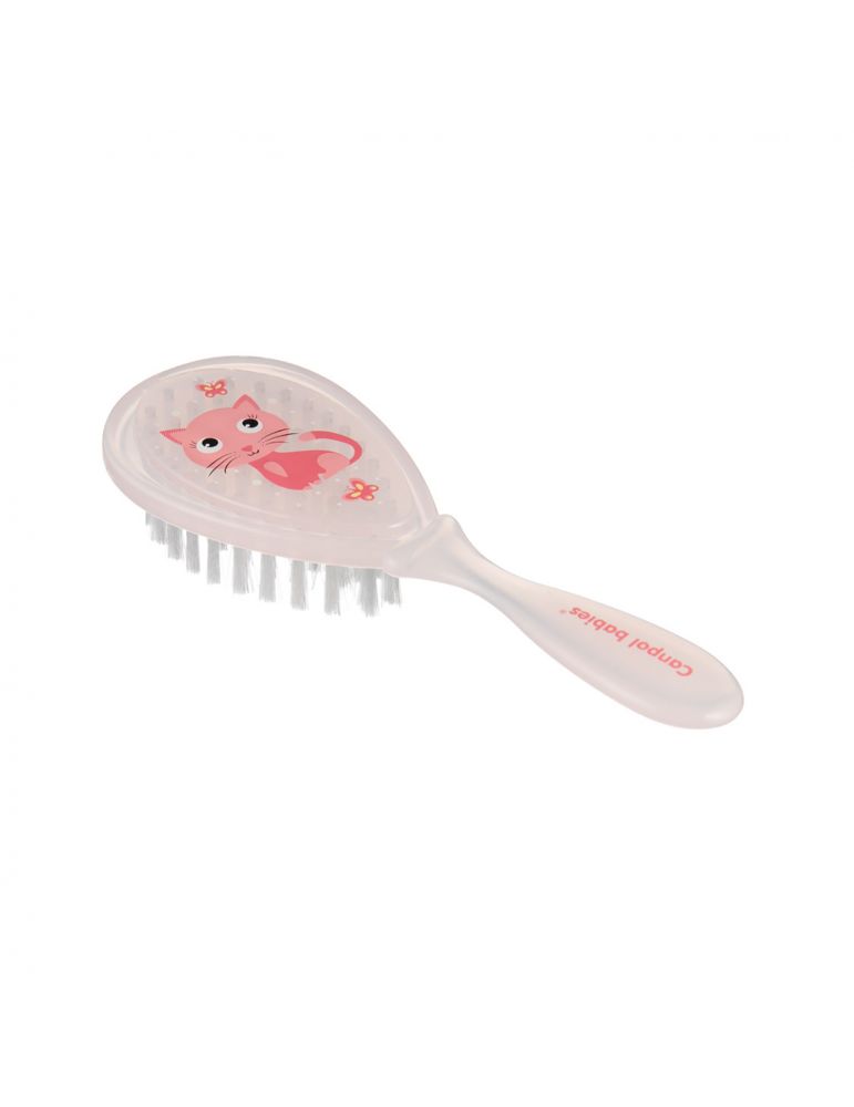 Szczotka wykonana ze sztucznego włosia, delikatnie masuje główkę dziecka, nie elektryzując włosów.
