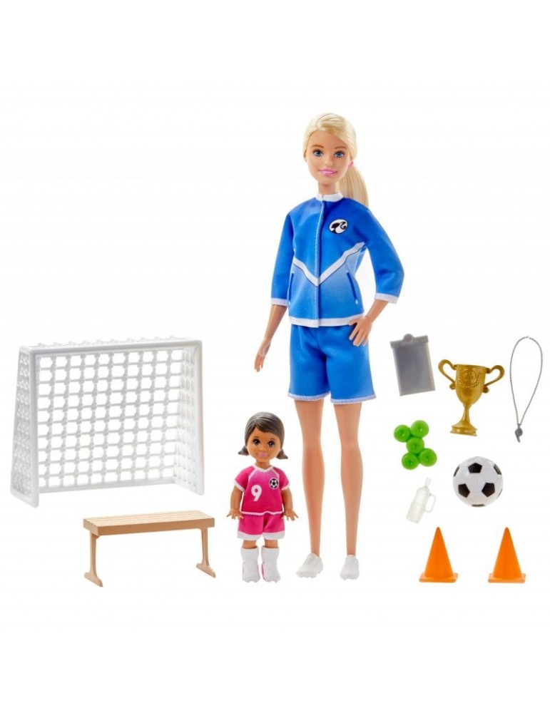 Barbie Zestaw Lalka Trenerka Piłki nożnej i Akcesoria Blondynka
