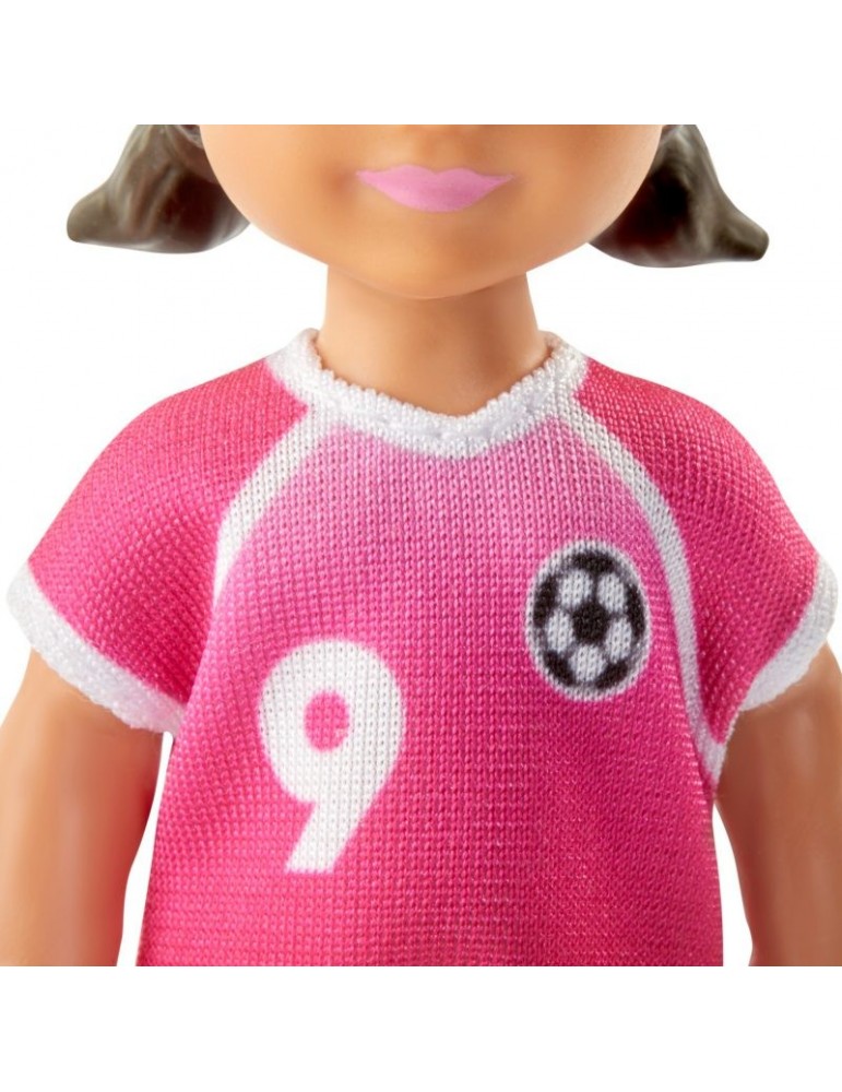 - W zestawie treningowym jest lalka Barbie Trenerka piłki nożnej w niebieskim stroju piłkarskim oraz urocza mała uczennica w różowym stroju piłkarskim