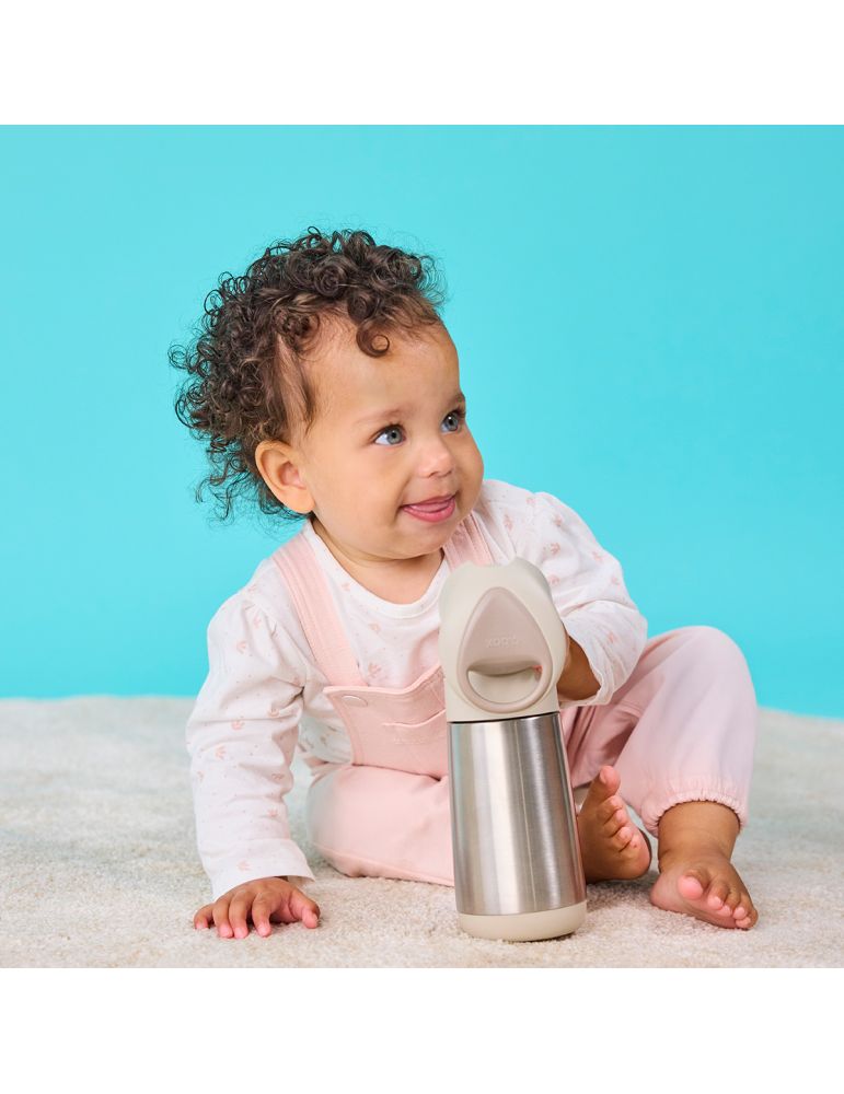 Dzięki potrójnym ściankom ze stali nierdzewnej utrzymuje temperaturę do 6 godzin. Twoje dziecko może pić w każdą pogodę. W komplecie uchwyt do przenoszenia butelki. Specjalnie zaprojektowana góra pozwala dzieciom samodzielnie otwierać butelkę.