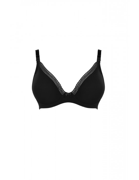 Biustonosz z wyprofilowanymi miseczkami z wyściółką. Otulające miseczki z fiszbinami zapewniają piersiom wysoki stopień oparcia i wygodę. Głęboki dekolt w kształcie litery V i tradycyjne klipsy umożliwiają odpięcie i zapięcie miseczki jedną ręką, a tym samym karmienie dziecka bez zdejmowania biustonosza. Biustonosz z 4 - stopniową regulacją zaczepów zapewnia komfort w czasie ciąży.