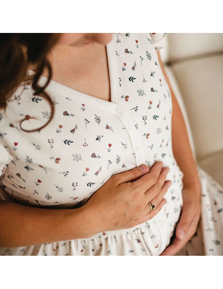 - Funkcjonalne zapięcie na całej długości koszuli ciążowej – ułatwia karmienie piersią w każdej sytuacji.