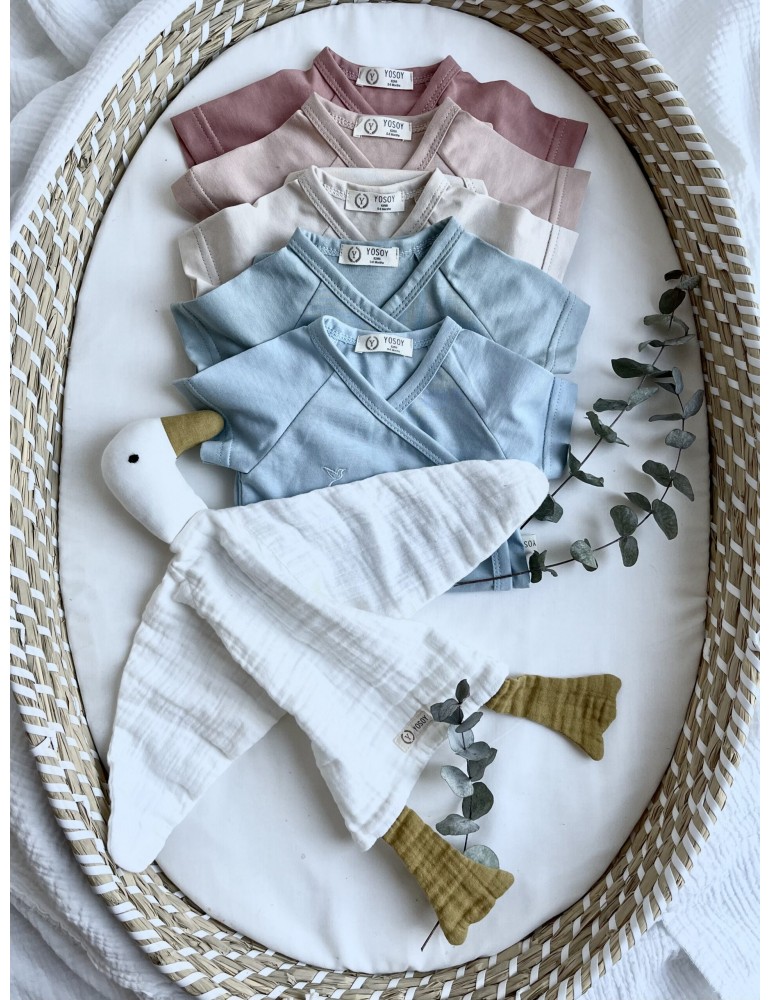 Body niemowlęce z krótkimi rękawkami wykonane ze 100% certyfikowanej bawełny organicznej.