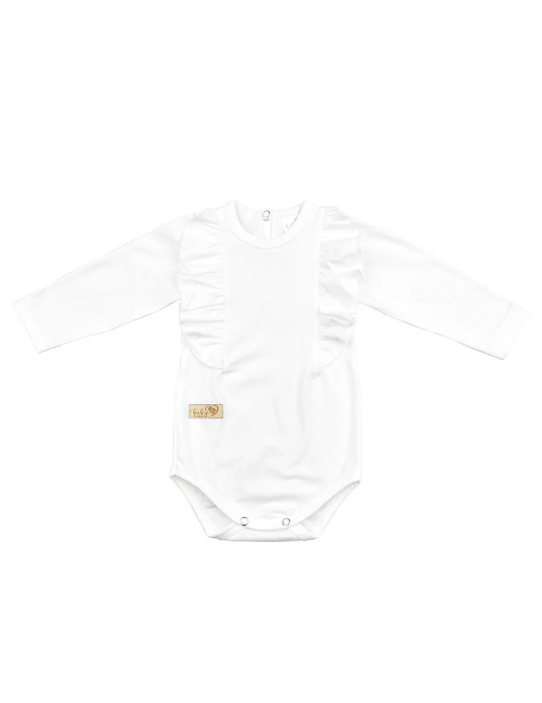 Baby in world Body niemowlęce z długim rękawem bawełniane z falbanką ecru