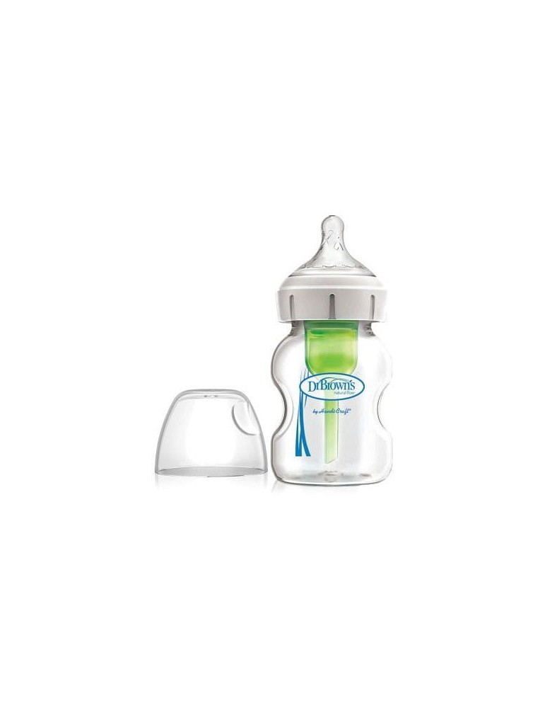 Butelka szklana od Dr Brown's z systemem antykolkowym, który zapobiega powstawaniu pęcherzyków powietrza i minimalizuje ryzyko wystąpienia kolek. Wyposażona w system regulacji ciśnienia powoduje, że maluch karmiony jest w sposób, który jest najbardziej zbliżony do naturalnego.