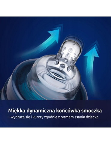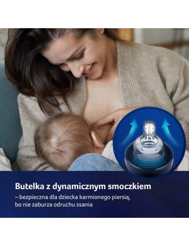Wyposażona w profesjonalny, miękki i dynamiczny smoczek, przez co jest bezpieczna dla dziecka karmionego piersią - nie zaburza odruchu ssania. Dynamiczna budowa smoczka wymaga od dziecka aktywnej pracy mięśni warg i języka. Jest kompatybilna z laktatorami LOVI.
