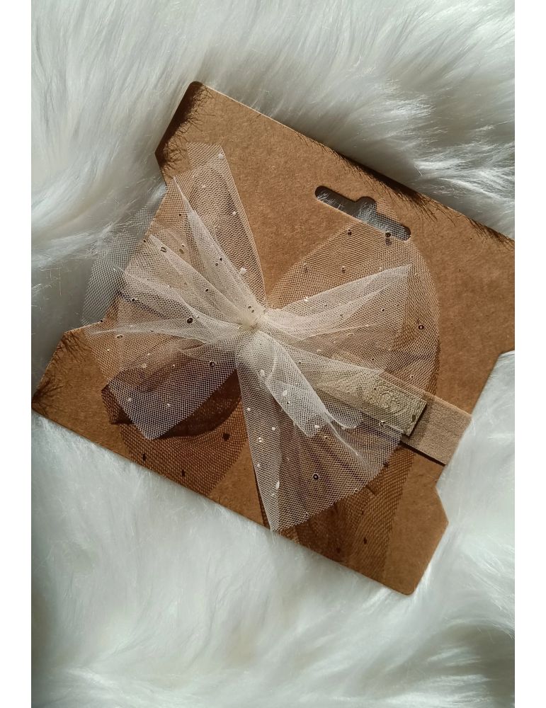 Baby in world Opaska niemowlęca z tiulową kokardą Latte