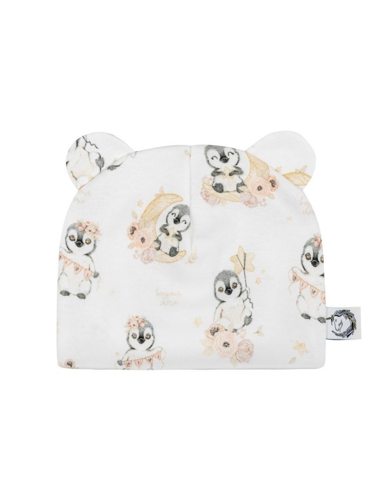 Wygodna, dobrze chroniąca uszka maleństwa czapeczka z pięknymi ozdobnymi uszkami.