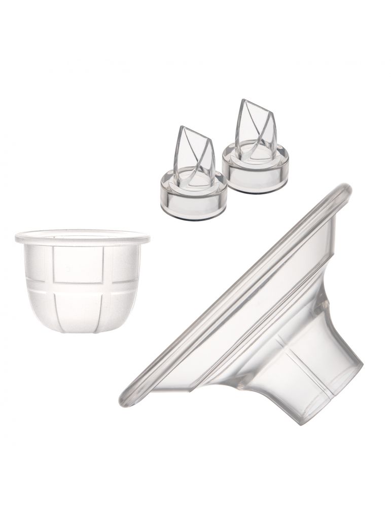Zestaw części zapasowych do laktatora elektrycznego EasyStart. Zestaw zawiera: silikonową nakładkę masującą , silikonową membranę , zaworek antyzwrotny 2 szt.