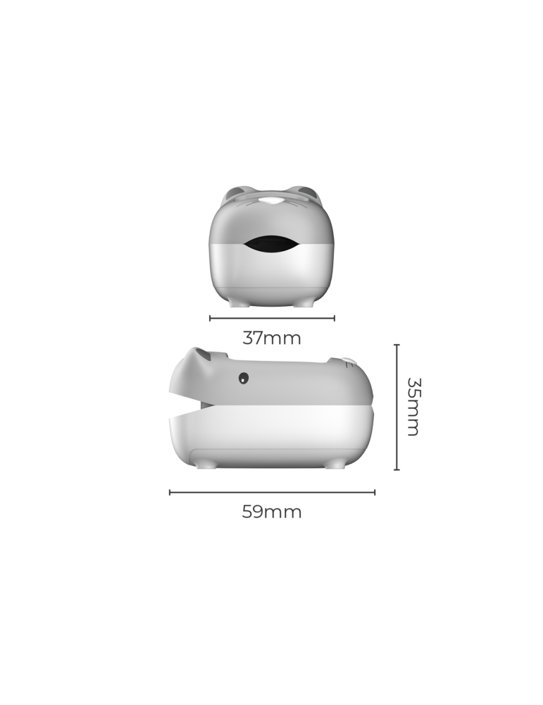 - Design przyjazny dla dzieci – przyjemna w dotyku obudowa w kształcie myszki, która odwraca uwagę dziecka i niweluje ewentualny niepokój.