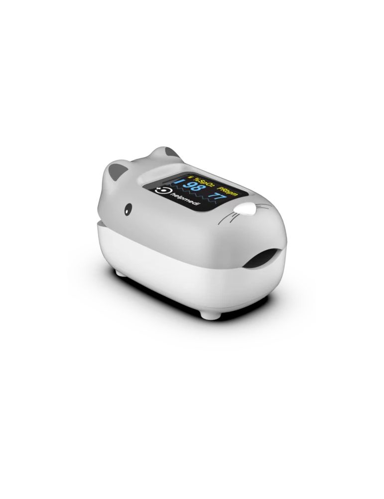 Pulsoksymetr jest wyrobem medycznym dla dzieci od 10 kg, używanym do pomiaru nasycenia krwi tlenem oraz tętna poprzez pomiar na palcu. Może być stosowany m.in. do użytku domowego, w gabinecie lekarskim i szpitalu. Wyświetlacz przedstawia wartości saturacji (SpO2) i tętna (PRbpm), także w postaci wykresu kolumnowego i falowego tętna.