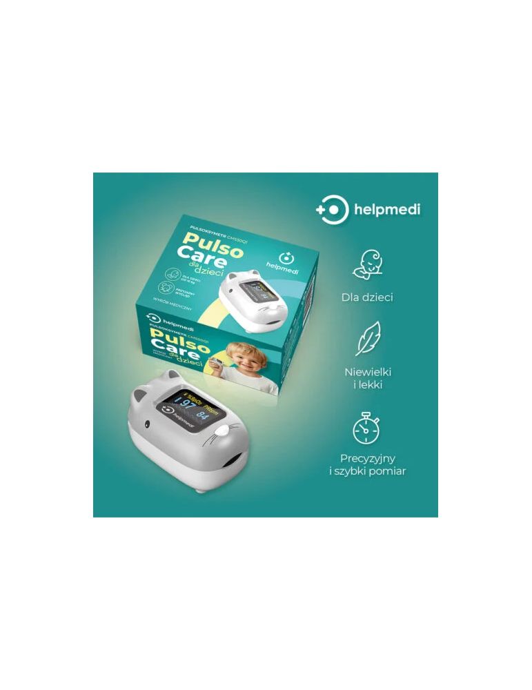 PulsoCare to elektroniczne urządzenie pozwalające na dziecinnie łatwy pomiar i monitoring nasycenia tlenem krwi oraz tętna dzieci o masie ciała powyżej 10 kg. Jest przydatny do stosowania podczas leczenia i w prewencji u dzieci z chorobami układu oddechowego i sercowo-naczyniowego. Przyjazny kształt myszki oraz prosta obsługa sprawiają, że maluchy chętniej zakładają pulsoksymetr na palec, umożliwiając szybki i precyzyjny pomiar.