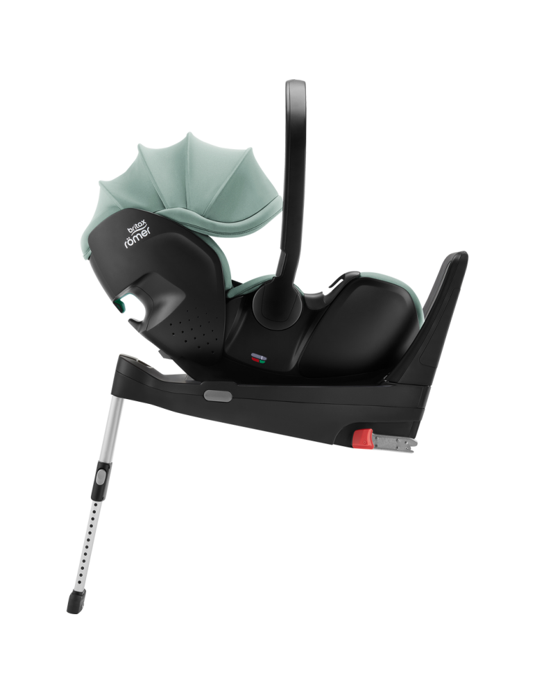 Montując nosidełko na bazie FLEX BASE 5Z w samochodzie lub na wózku, użytkownik słyszy wyraźne kliknięcie, które potwierdza poprawność umocowania nosidełka BABY-SAFE 5Z2. Dodatkowo, wskaźnik na przycisku zwalniającym, który znajduje się na bazie, zapewnia większe poczucie spokoju.