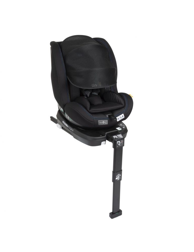 Jest łatwy w instalacji dzięki systemowi Isofix z nogą wspierającą, a dzięki systemowi obrotu o 360° łatwo ustawić fotelik z pozycji tyłem do kierunku jazdy do przodem do kierunku jazdy, aby bez wysiłku umieszczać dziecko w foteliku samochodowym. Maksymalny komfort gwarantowany jest starszym dzieciom dzięki nodze wspierającej, która całkowicie składa się pod podstawą, zapewniając odpowiednią przestrzeń na nogi. Zastosowano specjalną, oddychającą tkaninę, która gwarantuje ograniczenie pocenia.
