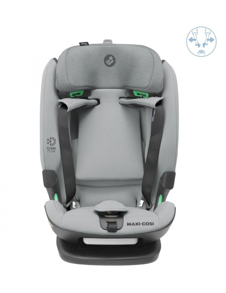 Od żłobka do szkoły — Titan Pro i-Size dostosowuje się do potrzeb rosnącego dziecka i może mu służyć od ukończenia 15 miesięcy do 12 lat. Gdy dziecko jest jeszcze małe, możesz używać uprzęży z magnetyczną klamrą, aby zapewnić mu bezpieczeństwo przez cały czas (5-punktowa uprząż może być używana do 4 roku życia/105 cm). Gdy dziecko urośnie na tyle, by mogło używać samochodowych pasów bezpieczeństwa, 5-punktową uprząż można łatwo zdjąć. Wyposarzony w poduszki zagłówek można ustawić w 15 różnych pozycjach. Superwygodny fotelik dla grup 1-2-3 przekształca się w siedzisko z wysokim oparciem, zapewniając Twojemu maluchowi bezpieczeństwo, ochronę i komfort podczas podróży.