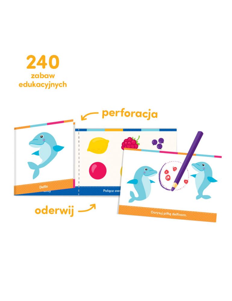 Poręczna edukacyjna książeczka dla dzieci w wieku od 2 lat zawiera 240 wciągających, edukacyjnych zabaw. Każda strona składa się z części z informacją, zagadką lub zadaniem oraz części do gryzmolenia. Dzięki perforacji możecie oderwać fragment do rysowania i cieszyć się poręczną książeczką z ciekawostkami.