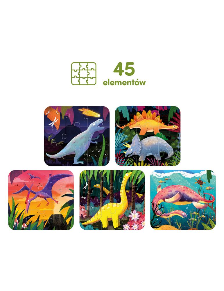 - w pudełku znajdziecie 5 układanek (45 elementów)