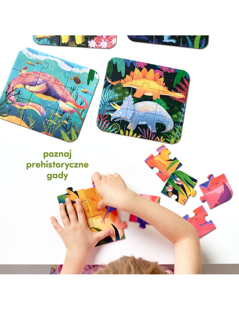 Witajcie w prehistorycznej krainie! Czy znacie te dinozaury, pterozaury i plezjozaury? Puzzle Fantastyczne dinozaury to prawdziwa GRRRatka dla dzieci, które są gotowe na kolejny etap puzzlowej przygody (każda z 5 układanek ma 9 puzzli) oraz kochają dinozaury. Dzięki poręcznemu formatowi puzzle świetnie się sprawdza w podróży czy na spacerze. Zabawa StaRRRt! Możecie: