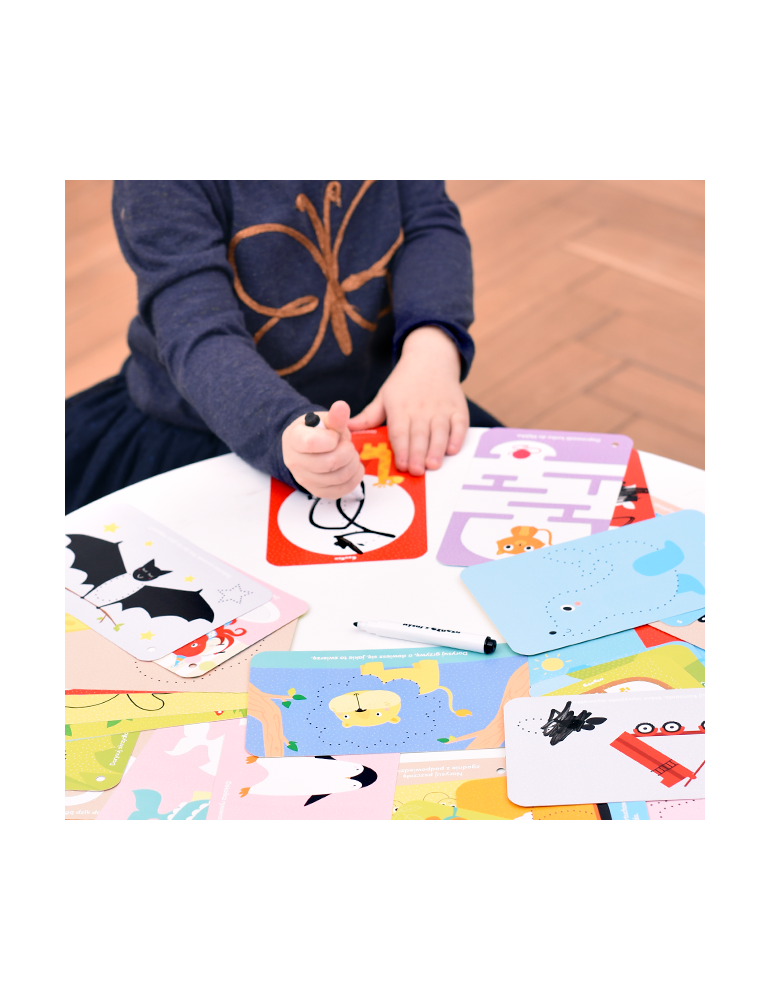 Zabawa z książeczką wspiera małą motorykę, ćwiczy koncentrację i wytrwałość, a przede wszystkim rozwija dziecięcą wyobraźnię i kreatywność. Dzięki poręcznemu formatowi książeczka z pisakiem zmazywakiem doskonale sprawdzi się podczas zabawy w domu i przedszkolu, a także w podróży.