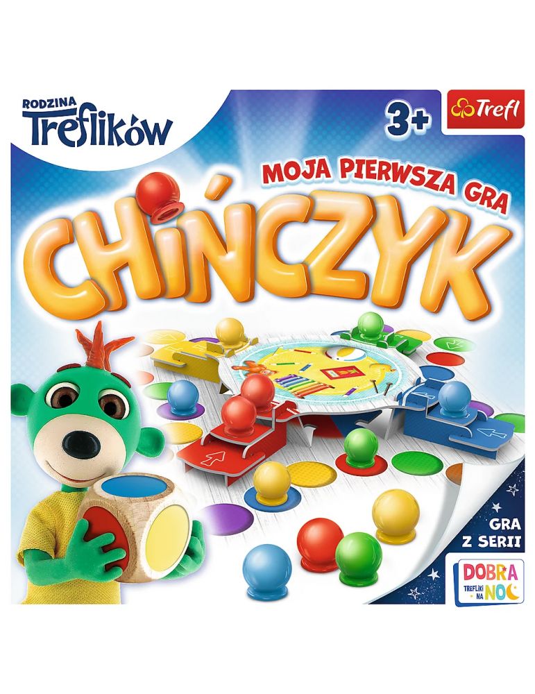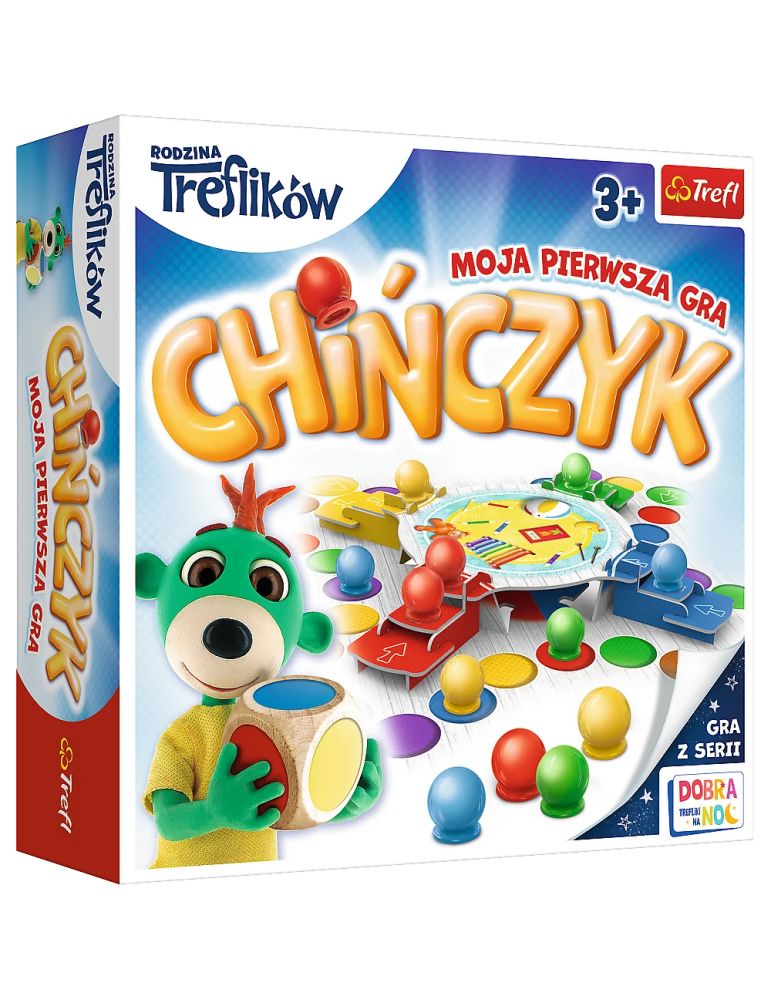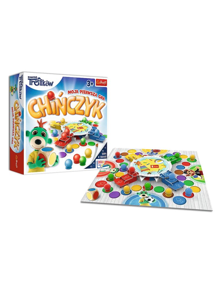Chińczyk to klasyczna gra dla najmłodszych z ulubionymi bohaterami bajki Rodzina Treflików! Pomóżcie Treflikom poukładać piłki, prowadząc wszystkie na środek pokoju. Uważajcie na pozostałych graczy, których na pewno spotkacie po drodze. Inni tez spieszą się ze swoimi pionkami, a spotkanie z nimi opóźni lekko porządki. Rzucajcie kolorową kostką, przesuwajcie piłeczki i wygrywajcie! Udanej zabawy życzy Rodzina Treflików. Dzięki kolorowej kostce niewymagana jest umiejętność liczenia.