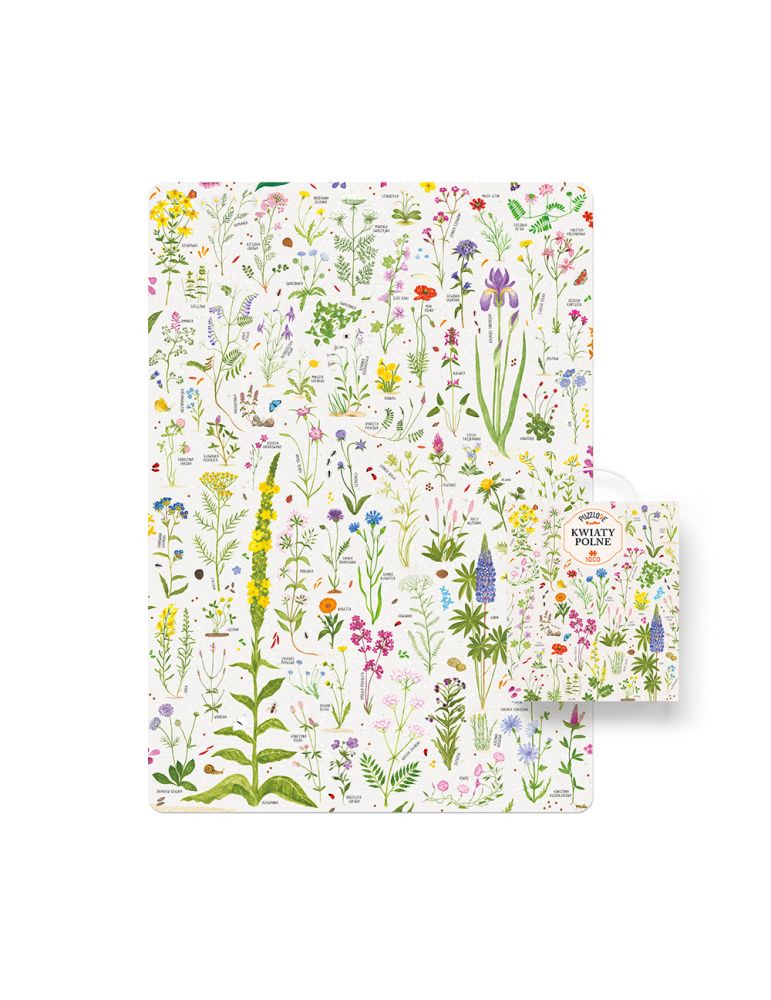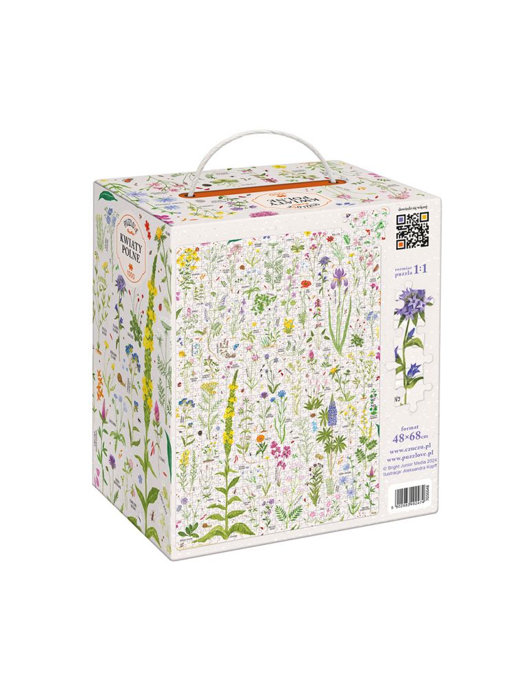 Poznajcie piękne i różnorodne królestwo kwiatów: przygotowaliśmy wyjątkowe puzzle z dzikimi kwiatami w roli głównej. Puzzlove CzuCzu Kwiaty polne składają się z 1000 puzzli. To nie lada wyzwanie. Sprawcie piękny prezent sobie lub przygotujcie bukiet, który nigdy nie zwiędnie, na przeróżne okazje. Gotowa ilustracja o wymiarach 48 x 68 cm może stać się piękną ozdobą Twojego wnętrza.