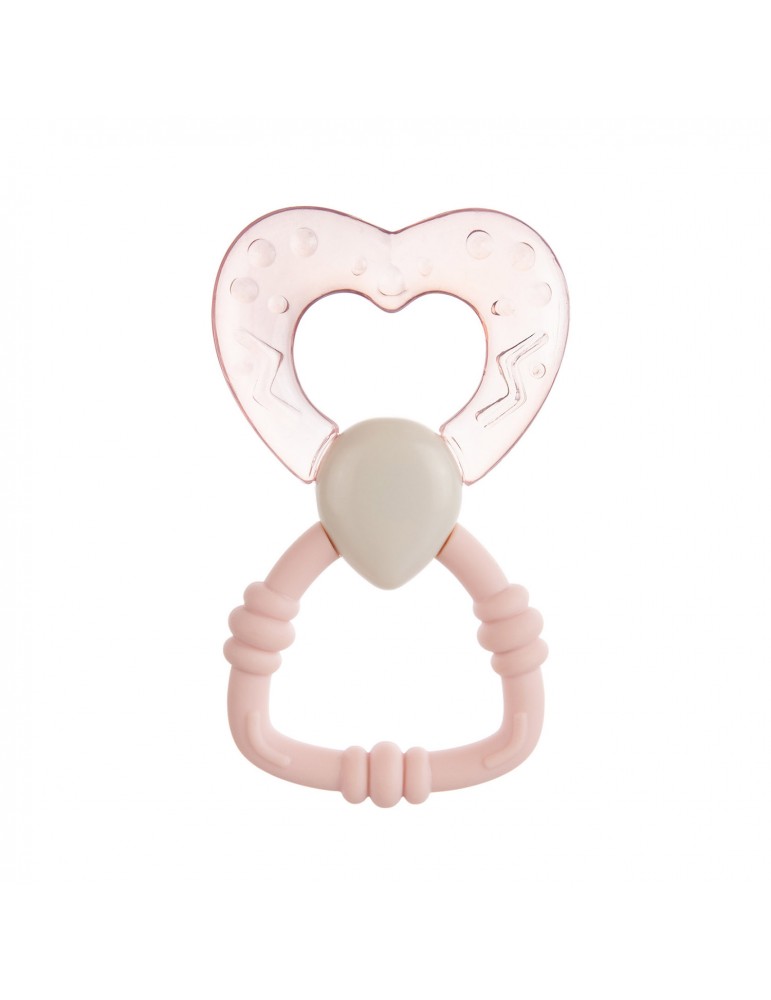 Utrzymany w przyjemnej kolorystyce pastelowego różu, schłodzony, dzięki delikatnie perforowanej powierzchni pomoże maluchowi w czasie ząbkowania, w okresie gdy dziąsła stają się twarde i zaczynają swędzieć. Wyprofilowany uchwyt jest wygodny do chwytania i utrzymania w małych rączkach.