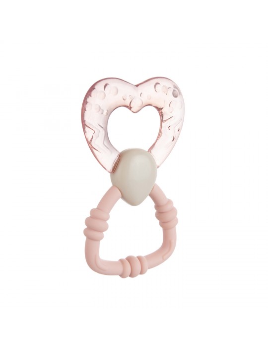 Miękki silikonowy wodny gryzak, z wygodnym uchwytem i ukrytą grzechotką. Gryzak może być schładzany w lodówce, nie należy go mrozić.