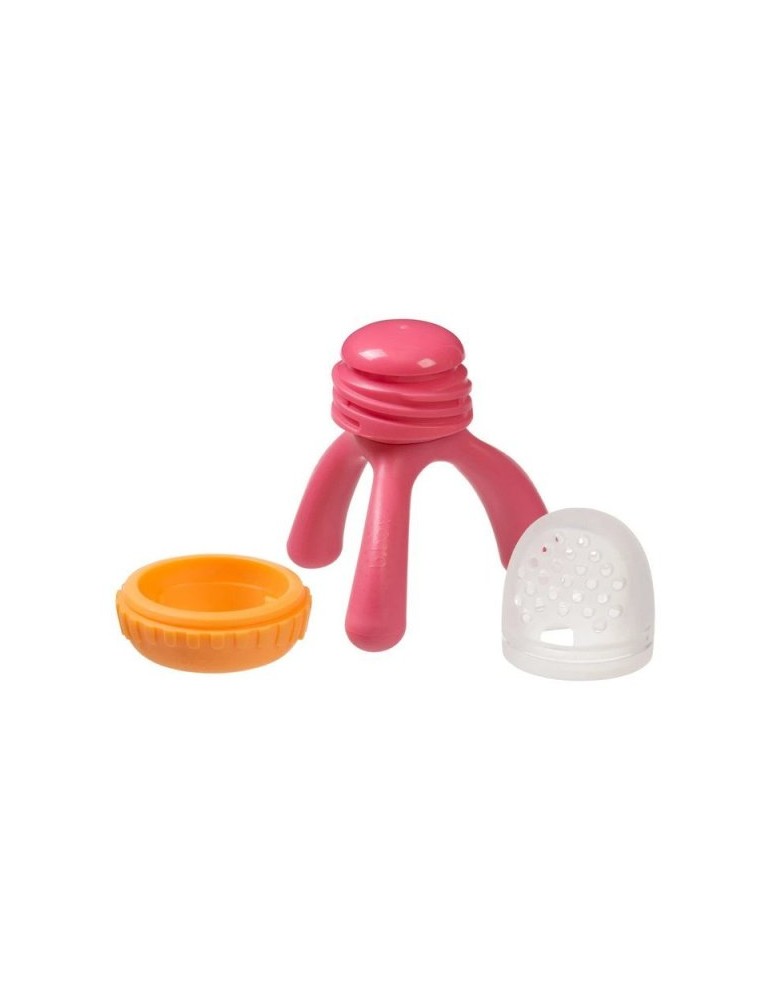 Bezpieczny i higieniczny gryzak silikonowy do podawania dziecku jedzenia (miękkich owoców i warzyw) do samodzielnego spożywania. Dla ułatwienia wyposażony w “trzy nóżki” będące stabilną podstawą a jednocześnie poręczmy uchwytem.