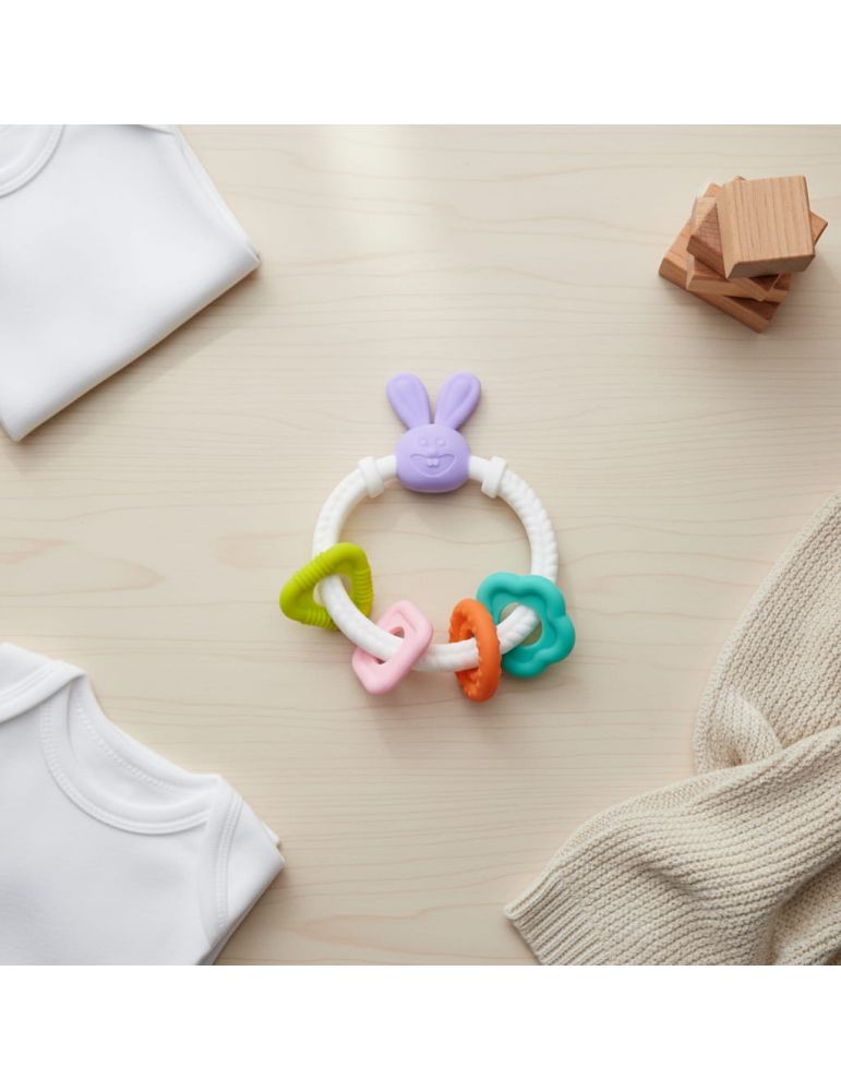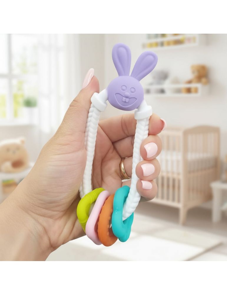 Silikonowy Gryzak Sensoryczny dla Niemowląt – Króliczek z Zawieszkami