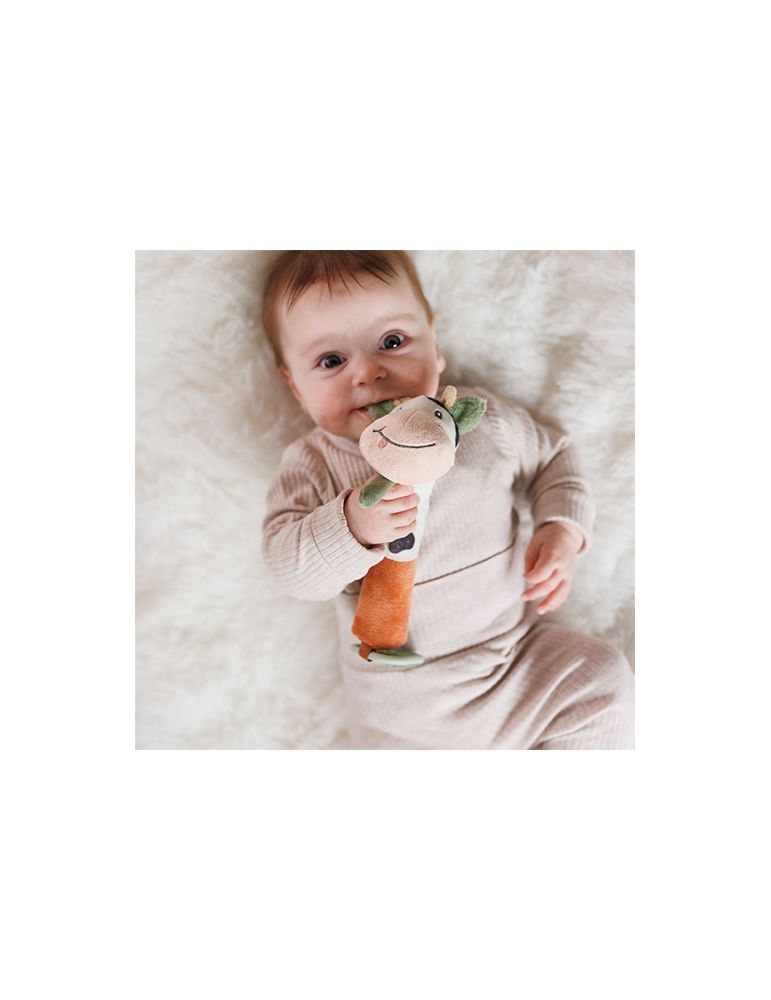 Sympatyczna pluszowa piszczałka Cow Bingo to zabawka dla niemowląt, która rozbudza dziecięcą ciekawość i wspomaga rozwój. Twój maluszek poznaje świat wszystkimi zmysłami- patrzy, dotyka, słucha i gryzie.