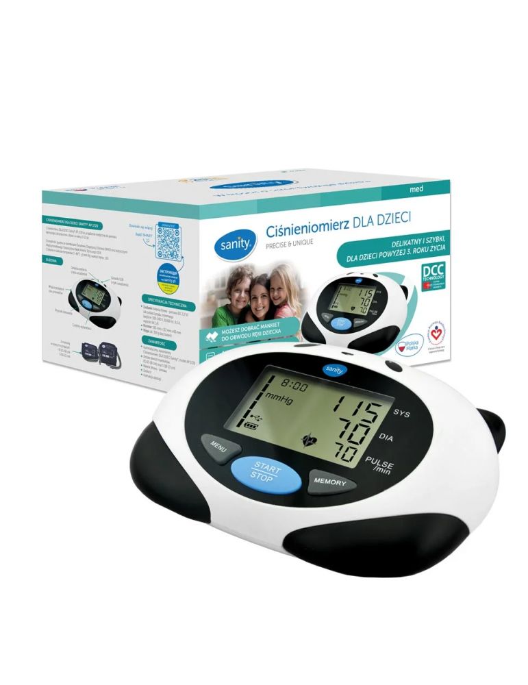 Ciśnieniomierz DLA DZIECI Sanity AP 1720 to urządzenie medyczne do pomiaru tętniczego ciśnienia krwi u dzieci. To pierwszy na polskim rynku ciśnieniomierz automatyczny przeznaczony dla najmłodszych, ponieważ zastosowany sposób pomiaru uwzględnia specyfikę ciśnienia krwi u dzieci.