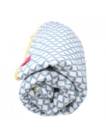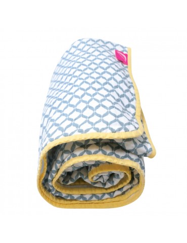 Dwie warstwy delikatnej bawełny muślinowej optymalnie dobranej dla niezrównanej lekkości kocyka, obszyte kontrastującą bawełnianą lamówką.