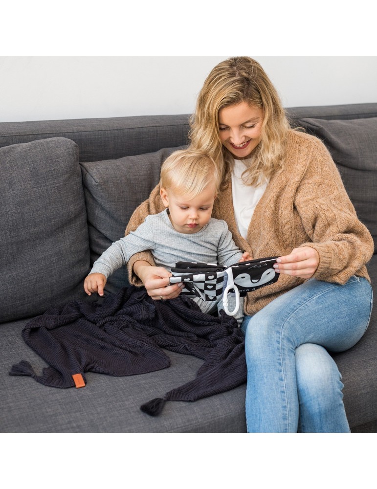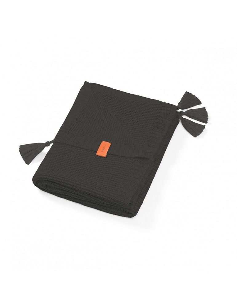 BabyOno Kocyk dzianinowy bambusowy z frędzlami czarny