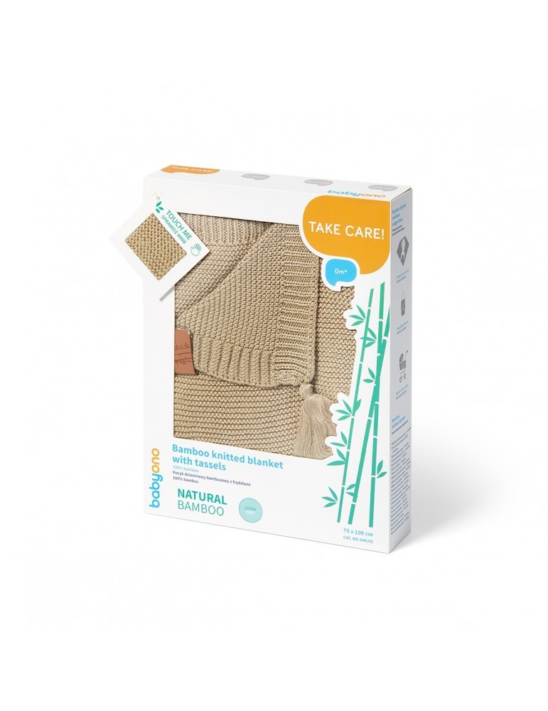BabyOno Kocyk dzianinowy bambusowy z frędzlami beż
