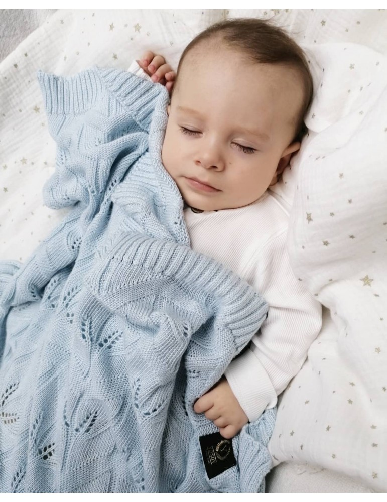 Yosoy kocyk ażurowy Leaves 80/100 błękitny
