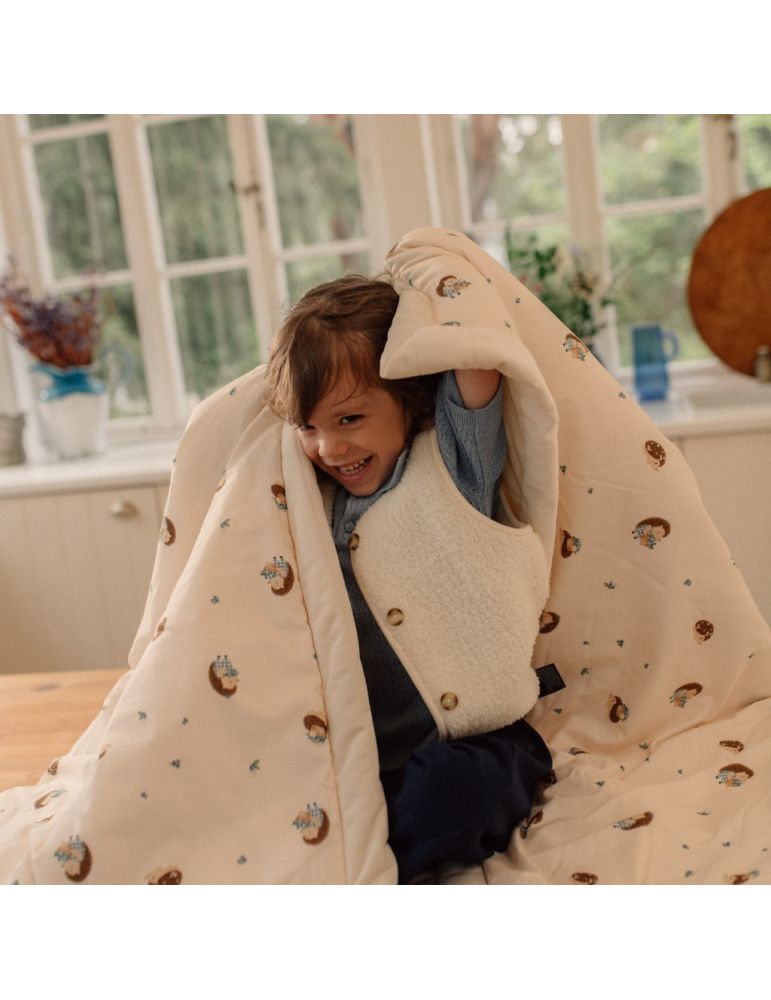 Dwustronny kocyk dla przedszkolaka, który sprawdzi się również w roli kołderki.