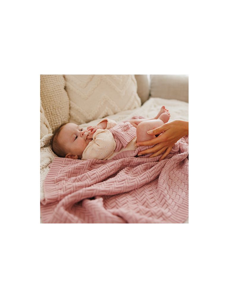 BabyOno Kocyk dzianinowy bawełniany różowy