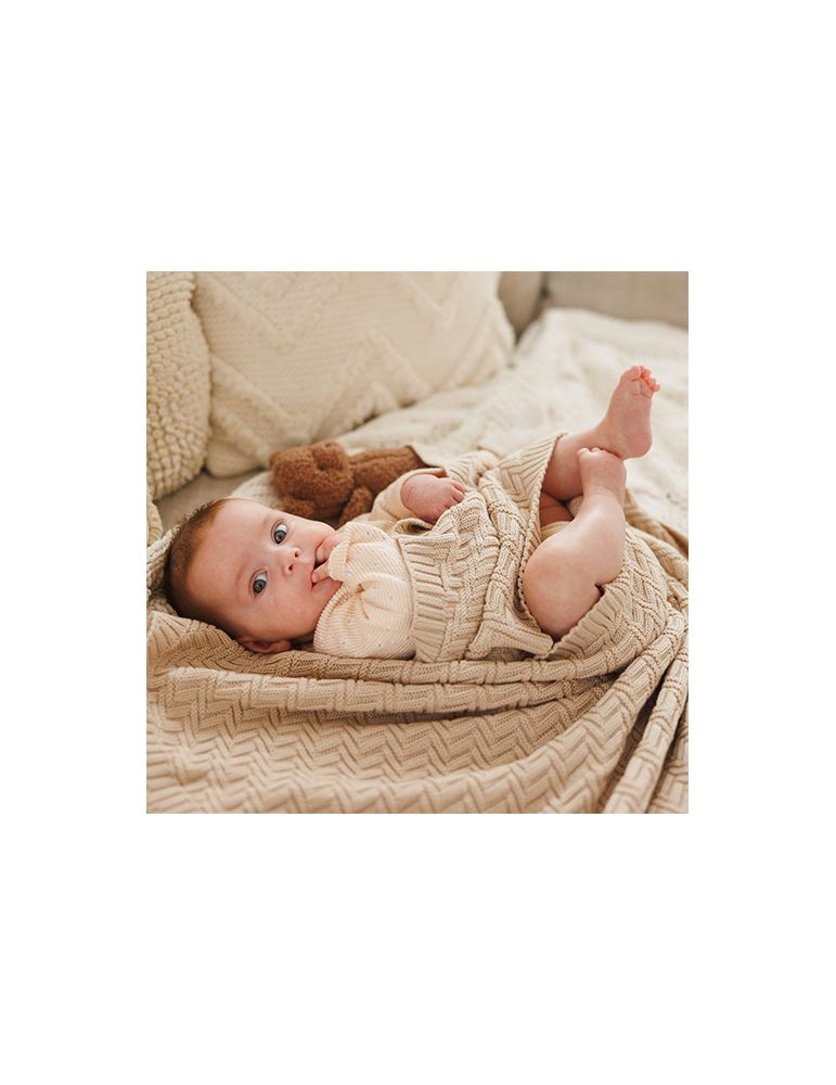 BabyOno Kocyk dzianinowy bawełniany beżowy