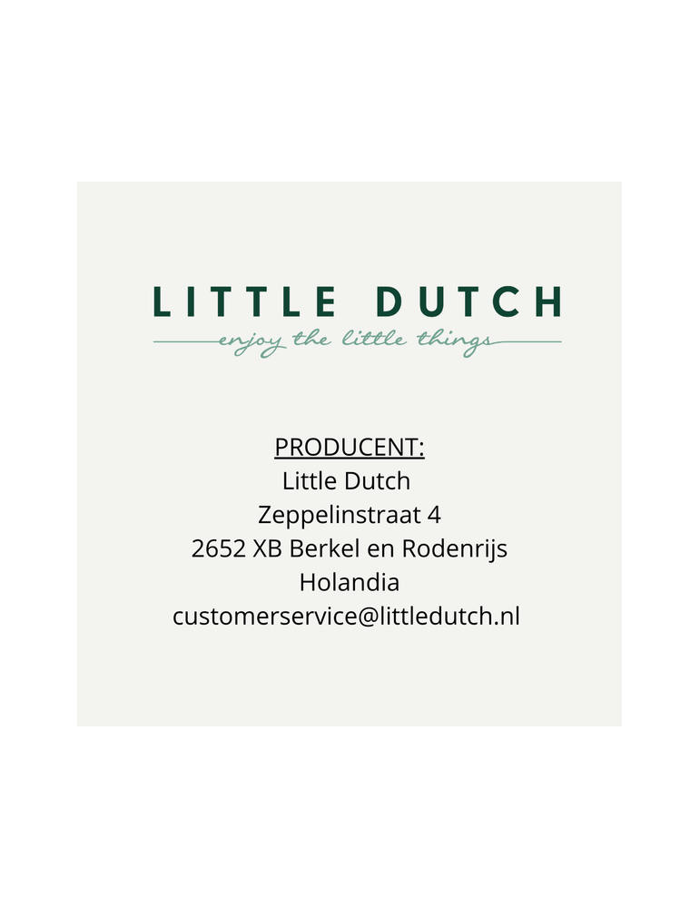 Little Dutch to holenderska firma rodzinna, prowadzona przez małżeństwo, które wkłada całe serce w tworzenie produktów dla najmłodszych. W ofercie marki znajdują się doskonałej jakości tekstylia, produkowane z bawełny organicznej z certyfikatem Oeko-tex, takie jak ręczniki, śpiworki do spania, otulacze, akcesoria do pokoików dziecięcych oraz zabawki sensoryczne dla niemowląt, jak również zabawki czy pojazdy wytwarzane z drewna. Produkty Little Dutch cechuje spokojna, pastelowa kolorystyka.