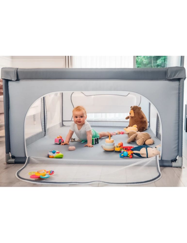 Produkt pozwala rodzicowi na wykonywania codziennych obowiązków, podczas gdy maluch bawi się wewnątrz kojca. Łatwy w utrzymaniu materiał sprawia, że wszelkie plamy powstałe podczas użytkowania można z łatwością wyczyścić. Natomiast do złożenia oraz rozłożenia kojca nie potrzeba żadnych dodatkowych narzędzi, a kompaktowy rozmiar i dołączona do zestawu torba ułatwiają przechowywanie. Dwa boczne wejścia zapinane na zamek pozwalają na pełną kontrolę nad przestrzenią – suwak znajduje się po zewnętrznej stronie, więc jedynie rodzic może zadecydować o otwarciu wejść.