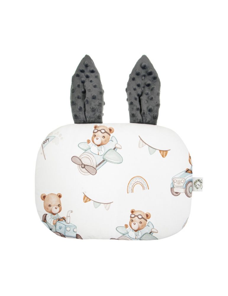 Poduszka ozdobiona jest króliczymi uszkami z minky.