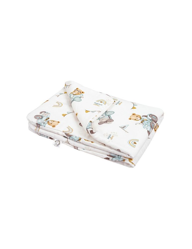 Środek kołderki wypełniony jest antyalergiczną włókniną wysokopuszystą silikonową. Zapewnia ona dziecku ciepło oraz wygodę podczas użytkowania.Kołderka idealnie sprawdza się od pierwszych dni życia, do łóżeczka, na popołudniową drzemkę, do wózka,nosidełka a także jako ulubiona kołderka na wszelkie wyjazdy lub jako mięciutka mata dla dziecka.