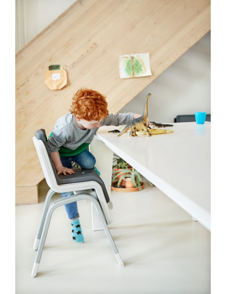 - Ukryty mechanizm regulujący wysokość pozwala dowolnie dopasować krzesełko i dzięki temu każde dziecko może zasiąść do wspólnego stołu