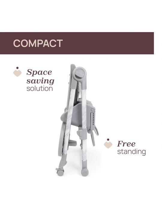 Krzesełko Polly Armonia w pełni dopasowuje się do sytuacji oraz potrzeb, zarówno dziecka jak i rodziców. Siedzisko można ustawiać na 9 różnych poziomach wysokości a jego oparcie ma trzy pozycje odchylenia – od niemal płaskiego położenia do pionowego. Regulowany jest także podnóżek – zawsze go można dopasować do potrzeb rozwijającego się dziecka. Obszerna tacka, ma 3 stopniową regulację odległości od siedziska, i kiedy zajdzie potrzeba – górną tacę można wypiąć i umyć pod bieżącą wodą.
