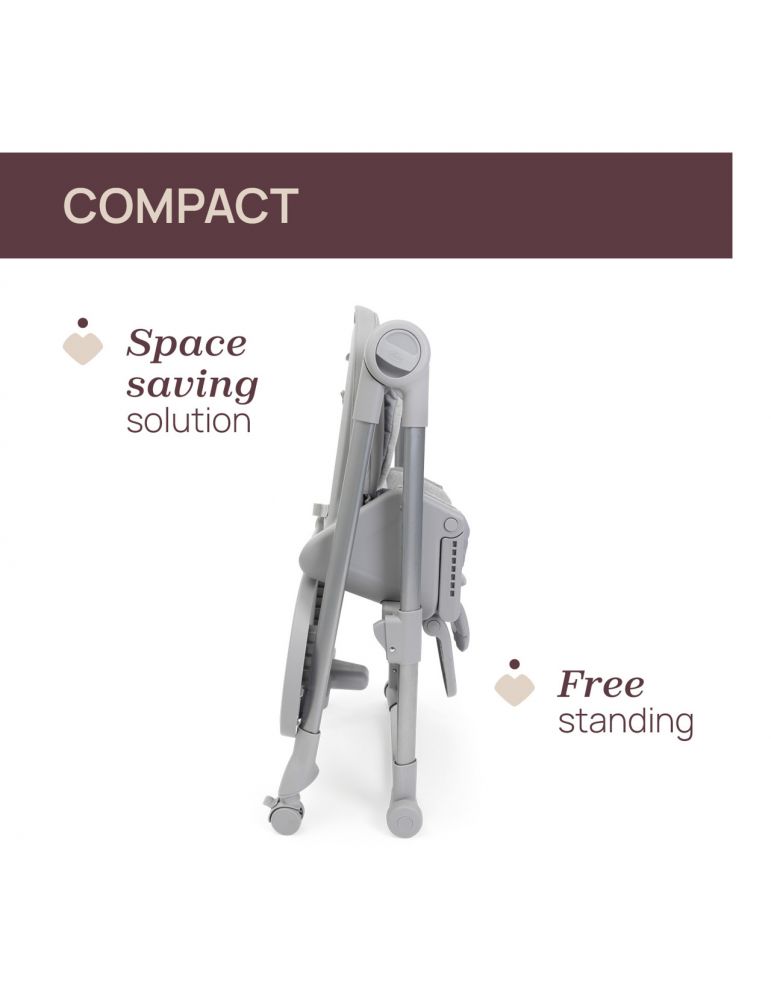 Krzesełko Polly Armonia w pełni dopasowuje się do sytuacji oraz potrzeb, zarówno dziecka jak i rodziców. Siedzisko można ustawiać na 9 różnych poziomach wysokości a jego oparcie ma trzy pozycje odchylenia – od niemal płaskiego położenia do pionowego. Regulowany jest także podnóżek – zawsze go można dopasować do potrzeb rozwijającego się dziecka. Obszerna tacka, ma 3 stopniową regulację odległości od siedziska, i kiedy zajdzie potrzeba – górną tacę można wypiąć i umyć pod bieżącą wodą.